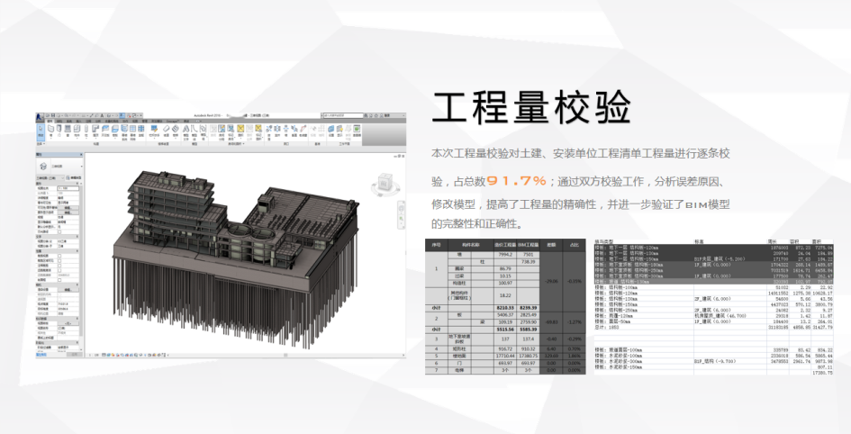 本次工程量校验应用广联达插件对土建、安装单位工程清单工程量进行追条校验,占总数61.7%;通过双方比对工作土建工程量偏差率在3%以内;安装部分工程量偏差率在2%以内。通过双方校验工作,分析误差原因、修改模型,提高了工程量的精确性,并进一步验证了BIM模型的完整性和正确性。 |