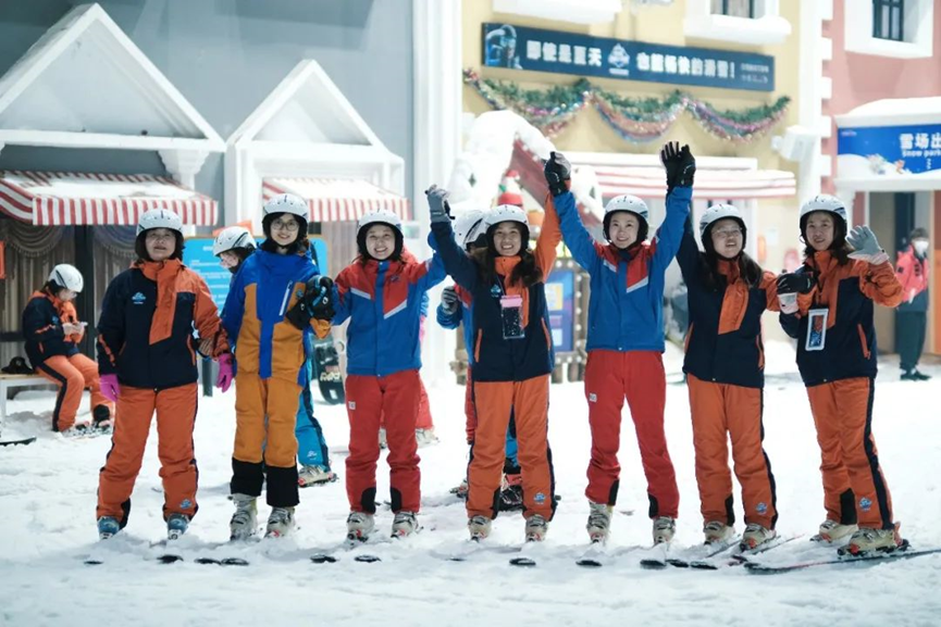 员工们在一路的欢歌笑语声中来到了融创冰雪世界。大家在初夏瞬感清凉世界显得非常的兴奋。尽管有些员工是初次体验滑雪运动,但他们克服了内心的惧怕,摔倒了爬起来再一次地去尝试,场上鼓励声不断响起。他们的不服输的表现超出了大家的想象。