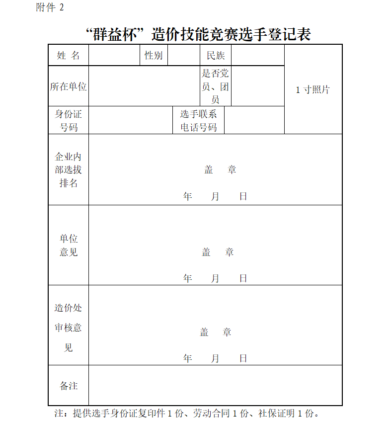 附件:1.“群益杯”造价技能竞赛选手登记汇总表