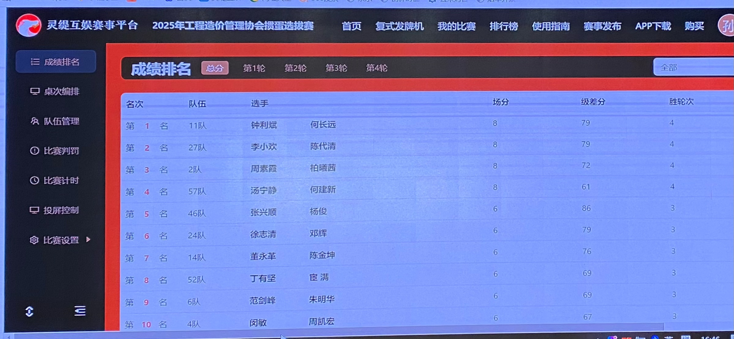 经过四轮激烈角逐,根据比赛规则,经裁判组确认后由裁判长当场宣布成绩,苏州信衡造价咨询房产评估有限公司的钟利斌、何长远等十家单位20名选手获前十,并将代表苏州工程造价咨询行业参加在淮安举行的“江苏省工程造价咨询行业2025年职工掼蛋大赛”,预祝选手们取得好成绩。