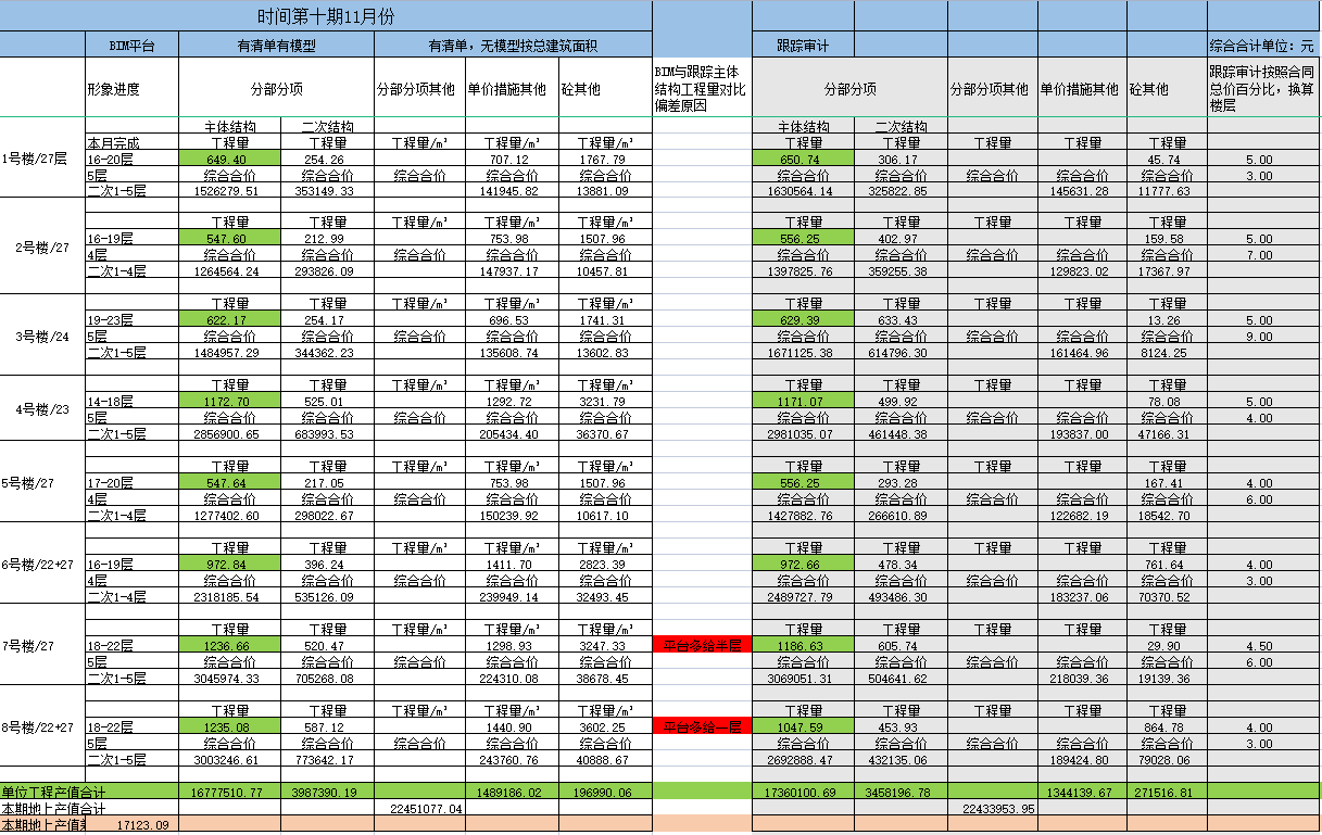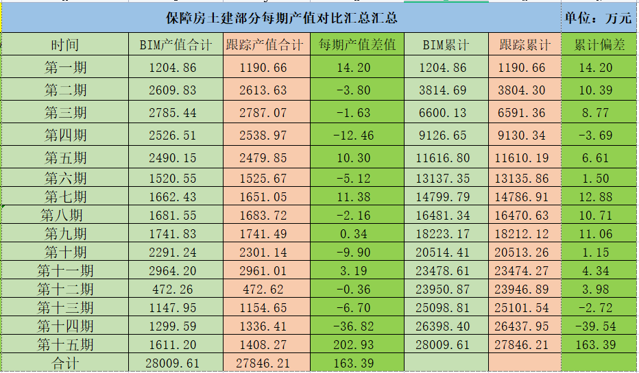 由此可见,BIM+造价评审对进度款控制起到一定作用,利用BIM技术对项目资金进行提前计划,在审核过程中通过BIM平台直接了解项目资金及进度款支付情况,截止第十四期BIM工程量累计计划金额33261.21万元, BIM审定累计金额28009.61万元,造价咨询审定金额?万元。通过BIM平台数据分析,可以看出本项目进度稍有滞后,因此业主积极采取赶工措施。